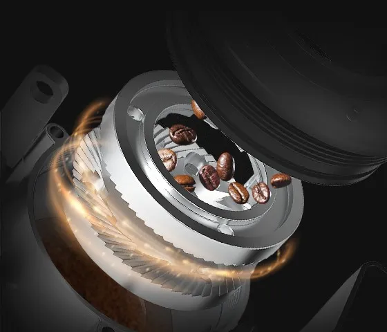 配備商用級金屬研磨機,64mm特制鋼銼,9檔可調研磨尺寸,確保研磨穩定精細。